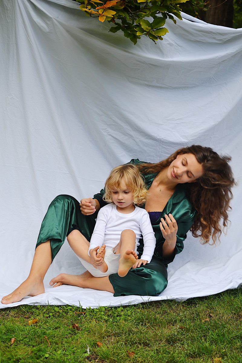 So elegant and comfy, this green satin pajama set I wore the other days is everything I ever dreamt of. Barely touching your skin, giving you that elegant and sophisticated flair that French actresses showcase in movies and make you think whether they truly ‘woke up like that’. But after all, isn’t this what we all want to look like in bed? Even with multiple kids around, I think all mothers should want to look their best when in bed for themselves and… the husbands. Once you become a mom does not mean you should be going all ‘trashy’ and baggy, more like the opposite. I am a true believer that the way you dress translates in the way you feel, and I am encouraging moms staying sexy and chic in bed and out of bed as a sign of being in control of their life even when they’re actually not.